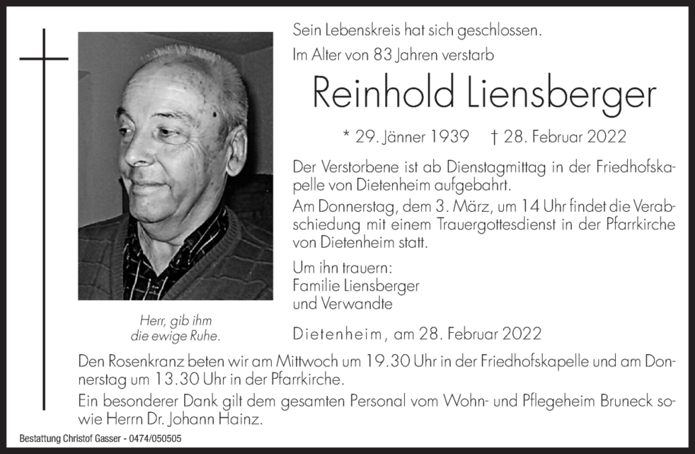 Ein besonderer Dank gilt dem gesamten Personal vom Wohn- und Pflegeheim Bruneck sowie Herrn Dr. Johann Hainz.