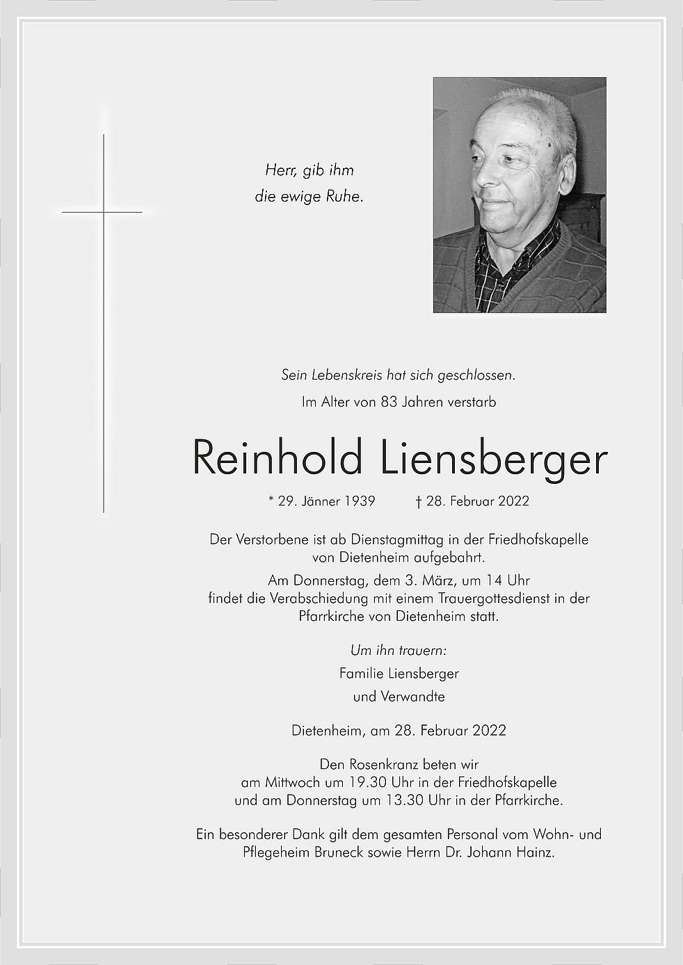 Der Verstorbene ist ab Dienstagmittag in der Friedhofskapelle