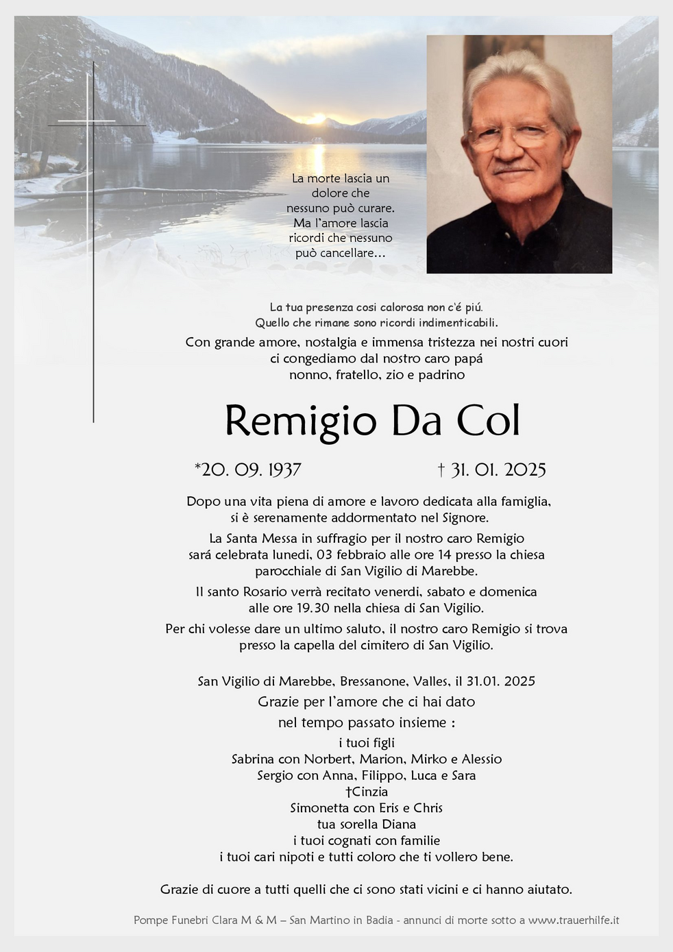 Verabschiedung: 03.02. - 14:00 Uhr St.Vigil in Enneberg