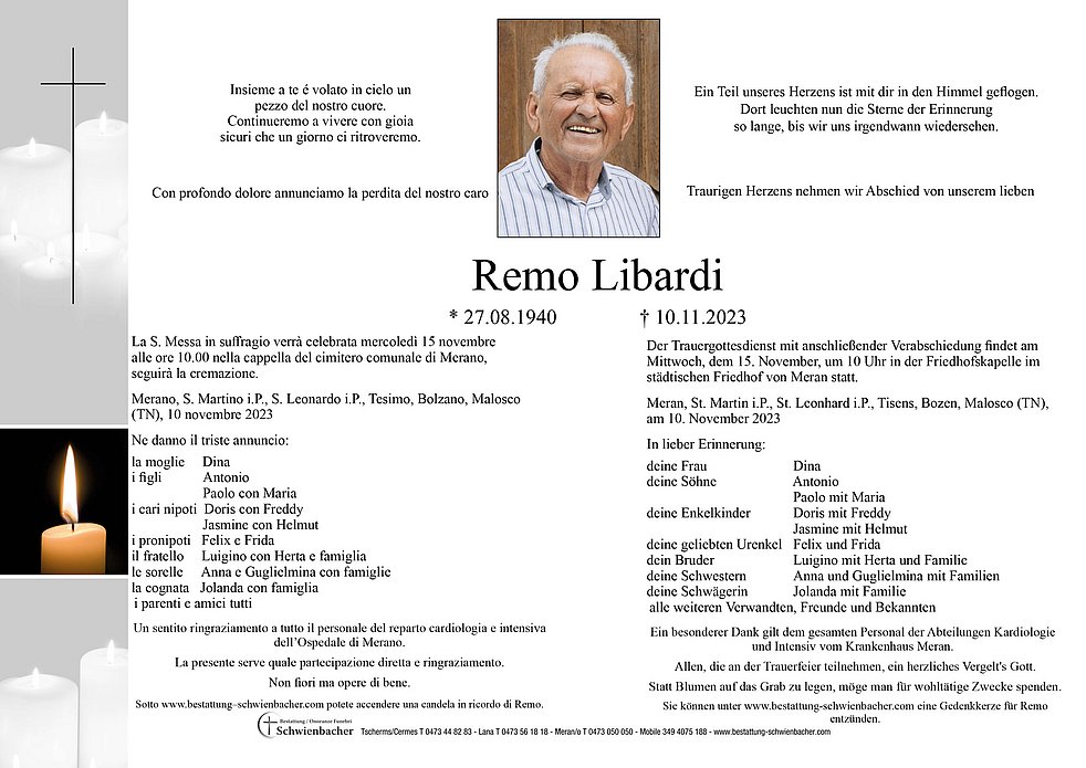 Trauerfeier: 15.11. - 10:00 Uhr Meran