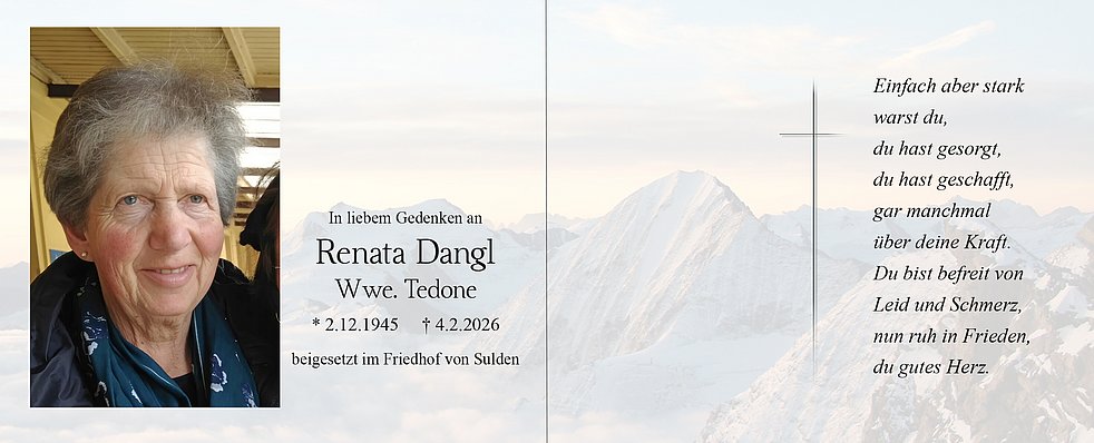Begräbnisgottesdienst: 06.02. - 14:00 Uhr Pfarrkirche Sulden