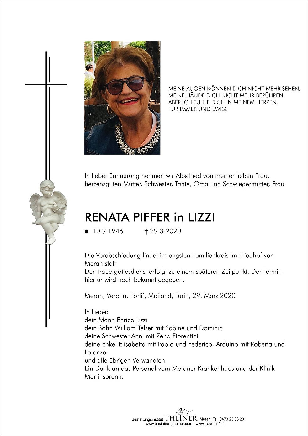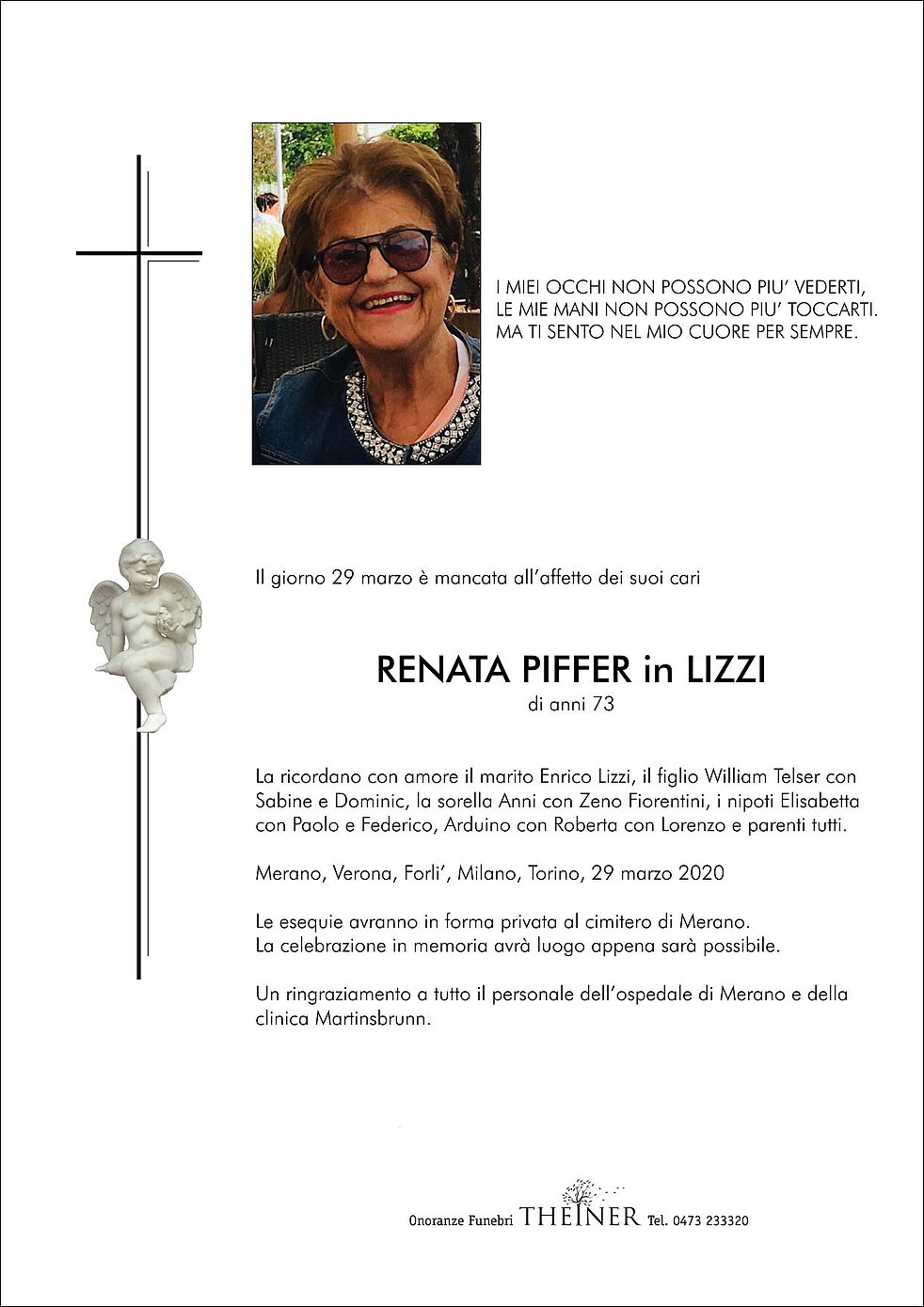 La ricordano con amore il marito Enrico Lizzi, il figlio William Telser con Sabine e Dominic, la sorella Anni con Zeno Fiorentini, i nipoti Elisabetta con Paolo e Federico, Arduino con Roberta con Lorenzo e parenti tutti.