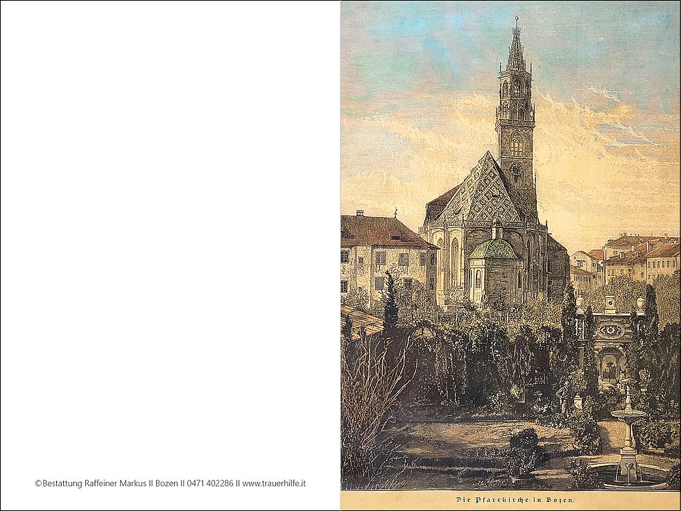 Den Trauergottesdienst mit anschließender Einsegnung feiern wir am Montag, dem 13. Mai, um 10.30 Uhr im Dom von Bozen.