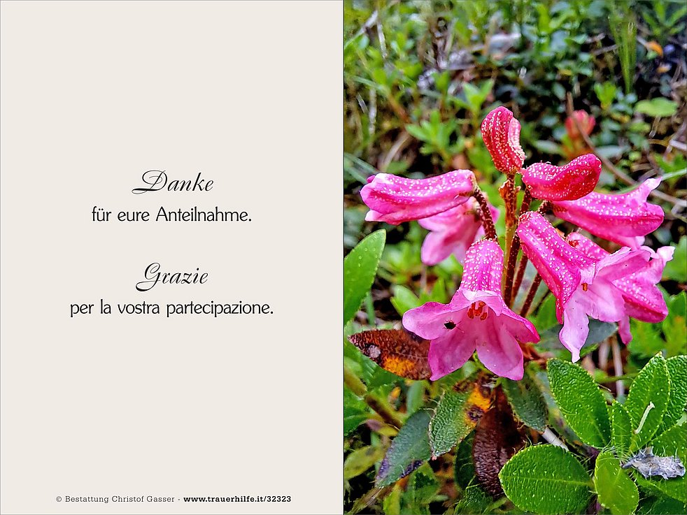 Ein besonderer Dank gilt dem gesamten Team der Abteilung Intensiv am Kranken-haus Bruneck für den Einsatz und die liebevolle Betreuung.
