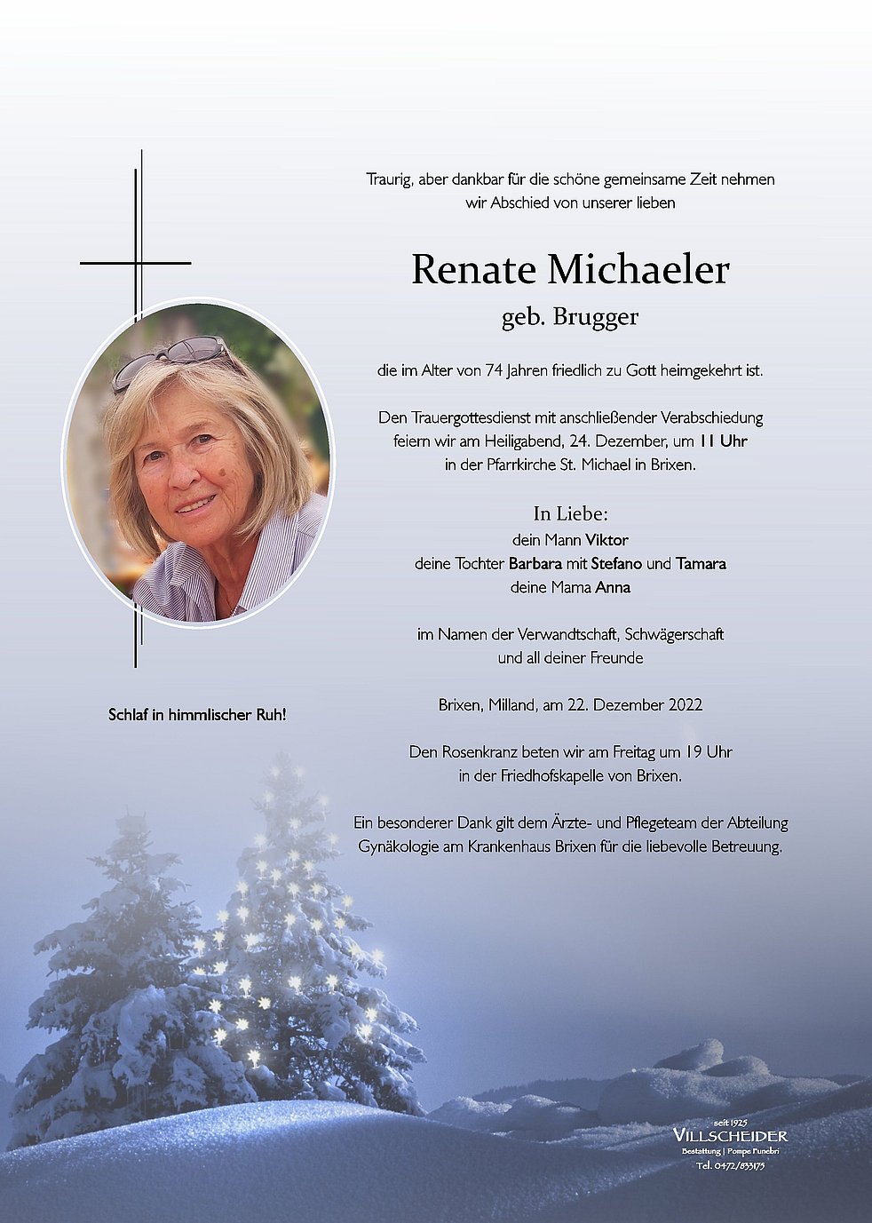In unseren Gedanken und Erinnerungen wird Renate in uns weiterleben.