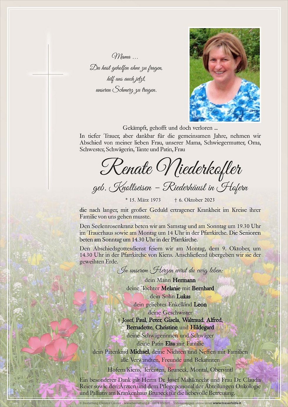 In tiefer Trauer, aber dankbar für die gemeinsamen Jahre, nehmen wir Abschied von meiner lieben Frau, unserer Mama,