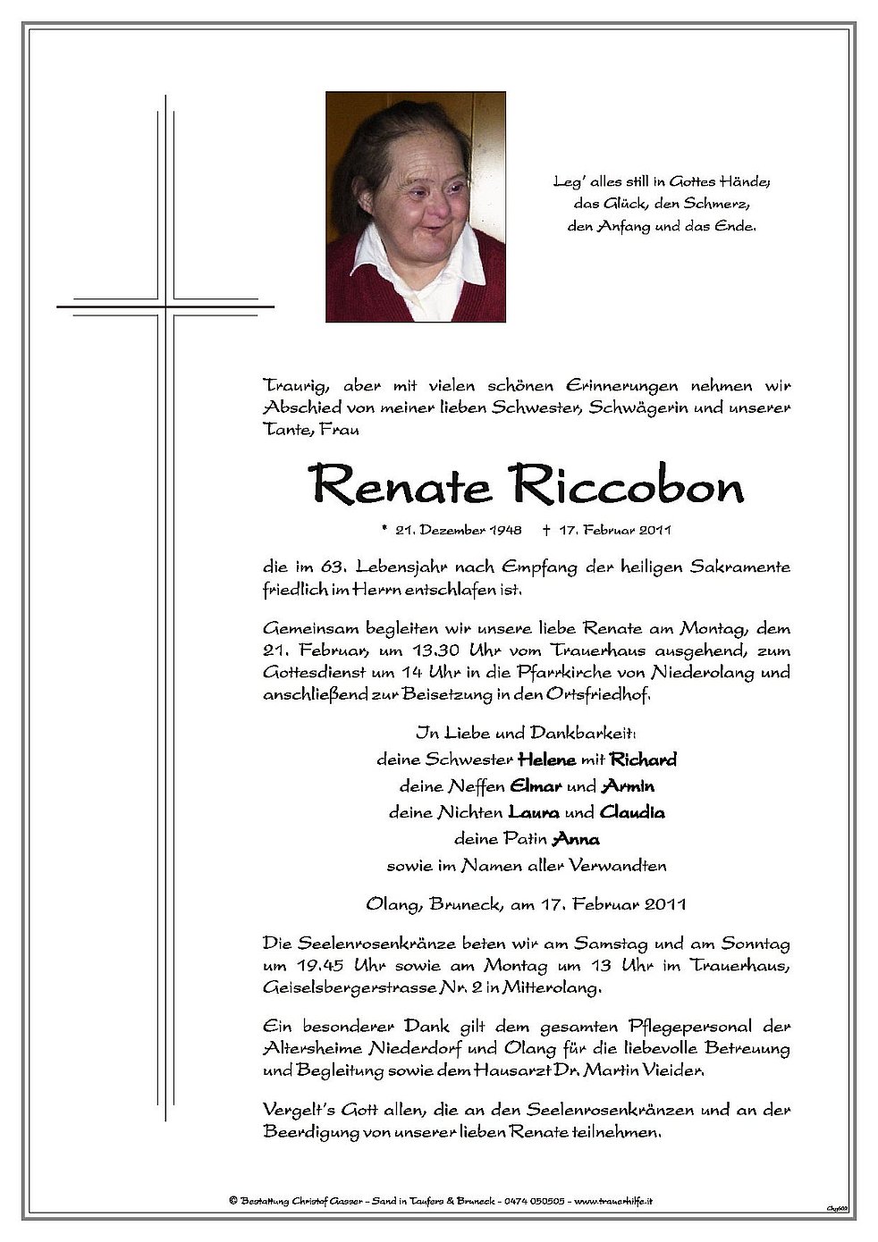 Gemeinsam begleiten wir unsere liebe Renate am Montag, dem 21. Februar, um 13.30 Uhr vom Trauerhaus ausgehend, zum Gottesdienst um 14 Uhr in die Pfarrkirche von Niederolang und anschließend zur Beisetzung in den Ortsfriedhof.