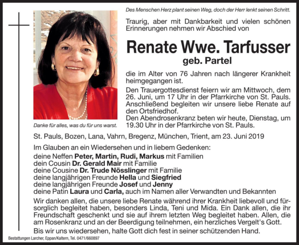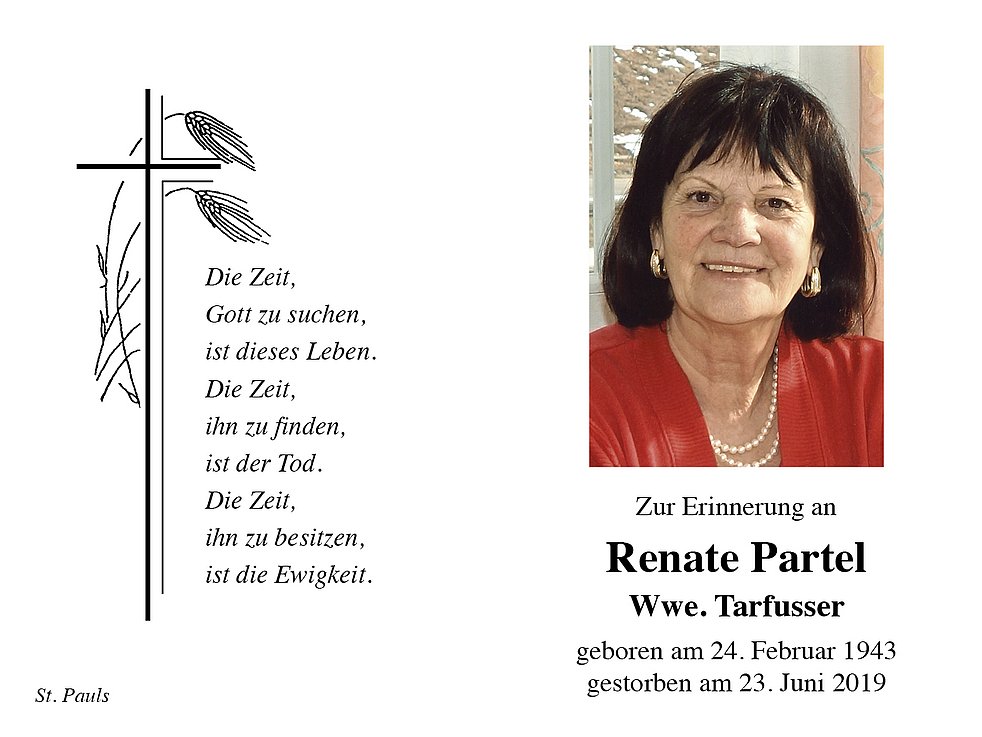 Renate Wwe. Tarfusser geb. Partel