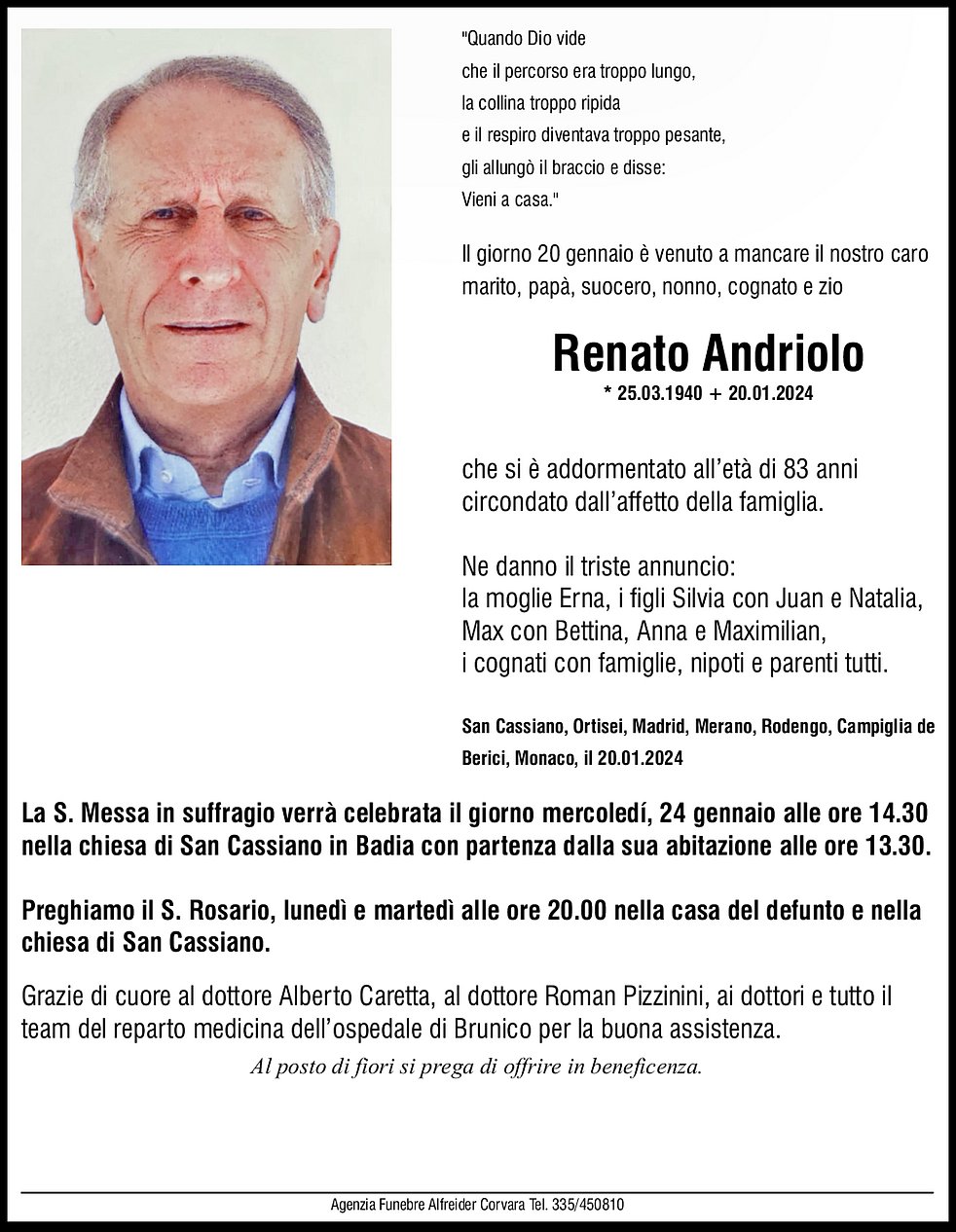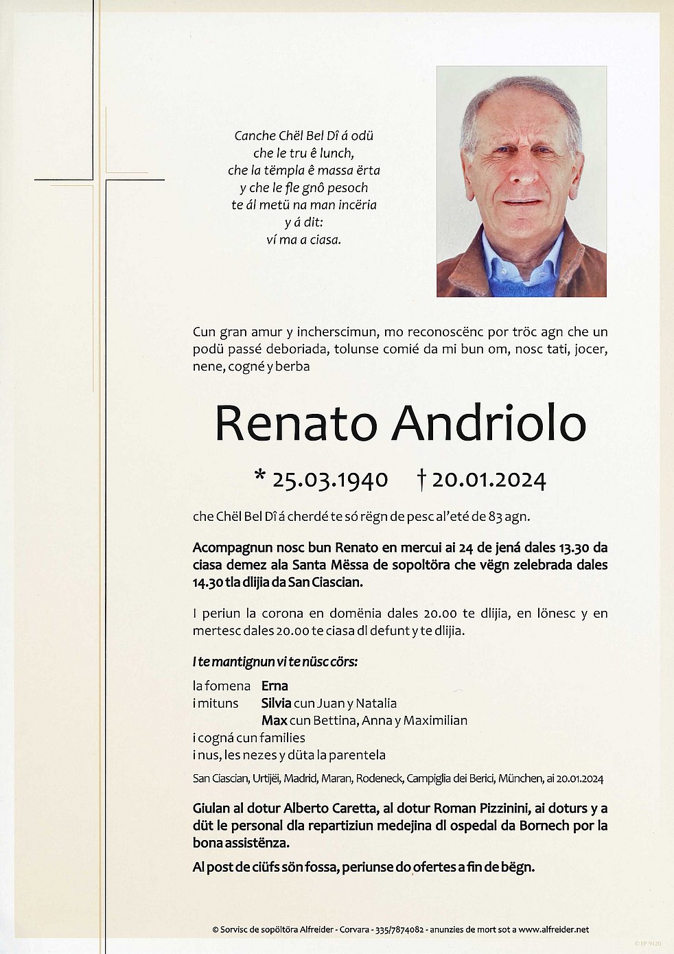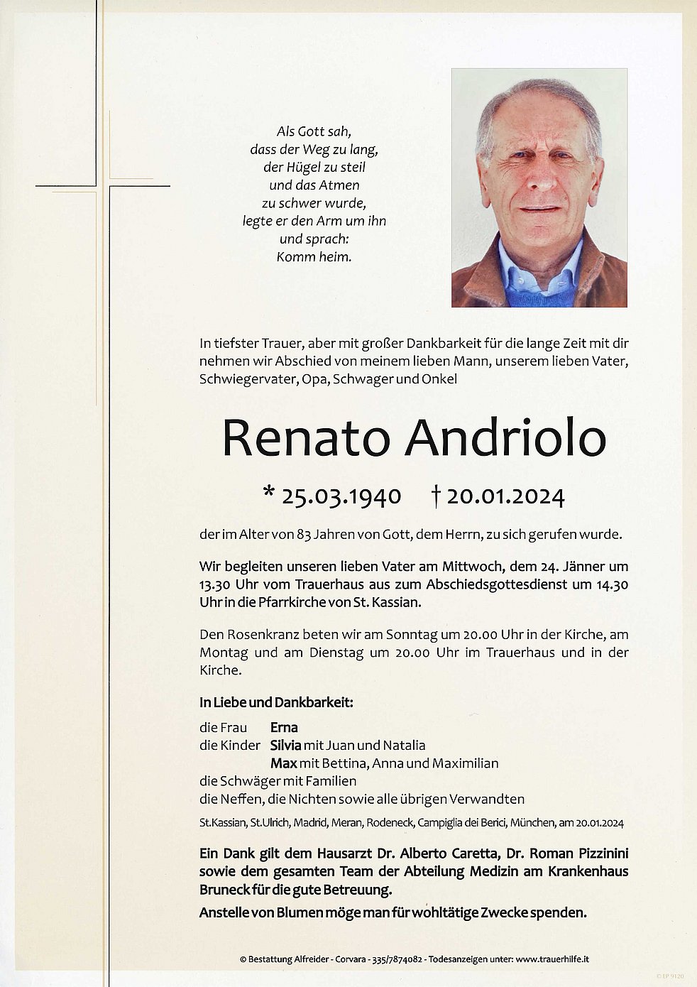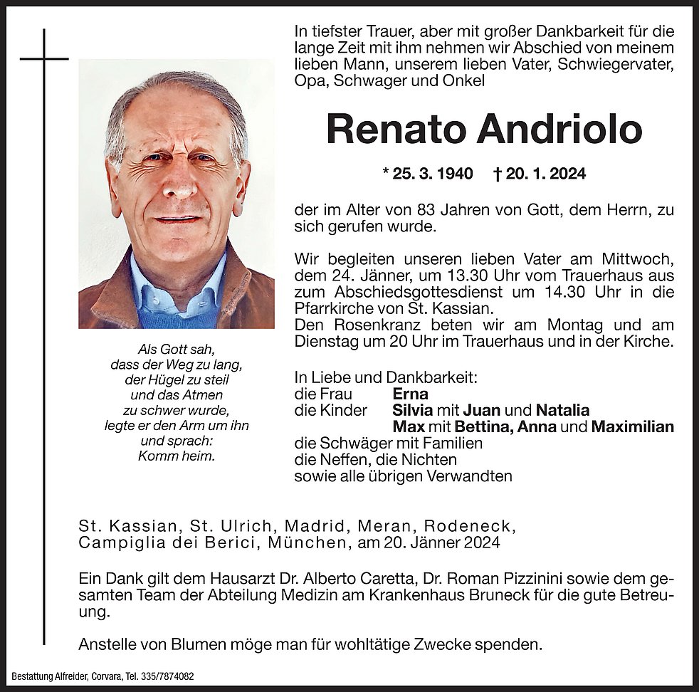 Verabschiedung: 24.01. - 14:30 Uhr Pfarrkirche St.Kassian