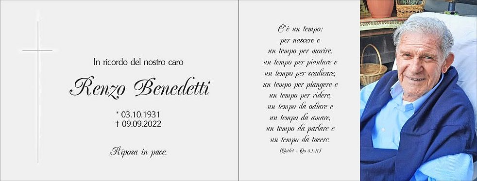 Ne danno il triste annuncio i nipoti Roberto, Sandro, Dietmar, Nadia, Monica, Boris e Patrizia con famiglia, prenipoti ed i parenti tutti.