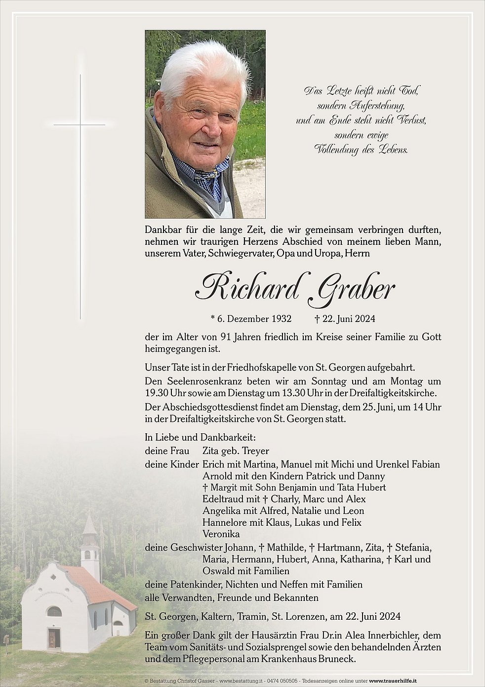 Dankbar für die lange Zeit, die wir gemeinsam verbringen durften, nehmen wir traurigen Herzens Abschied von meinem lieben Mann, unserem Vater, Schwiegervater, Opa und Uropa, Herrn