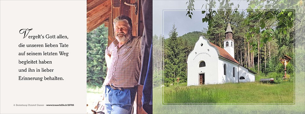 Ein großer Dank gilt der Hausärztin Frau Dr.in Alea Innerbichler, dem Team vom Sanitäts- und Sozialsprengel sowie den behandelnden Ärzten und dem Pflegepersonal am Krankenhaus Bruneck.