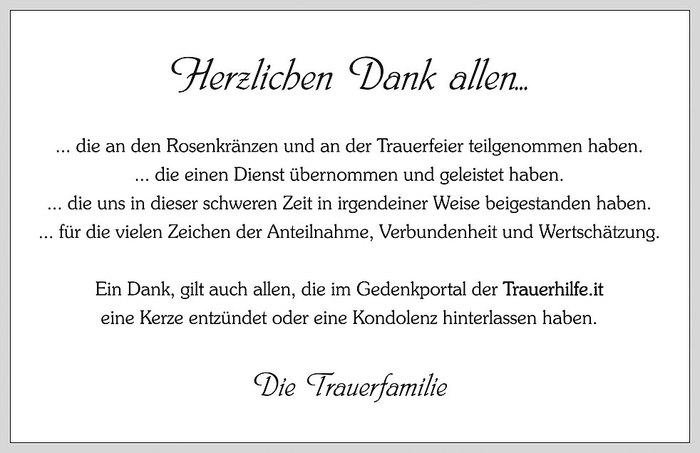 Traurigen Herzens, aber mit großer Dankbarkeit, nehmen wir Abschied von unserem lieben Mann, Vater, Schwiegervater, Grossvater, Bruder, Schwager und Onkel