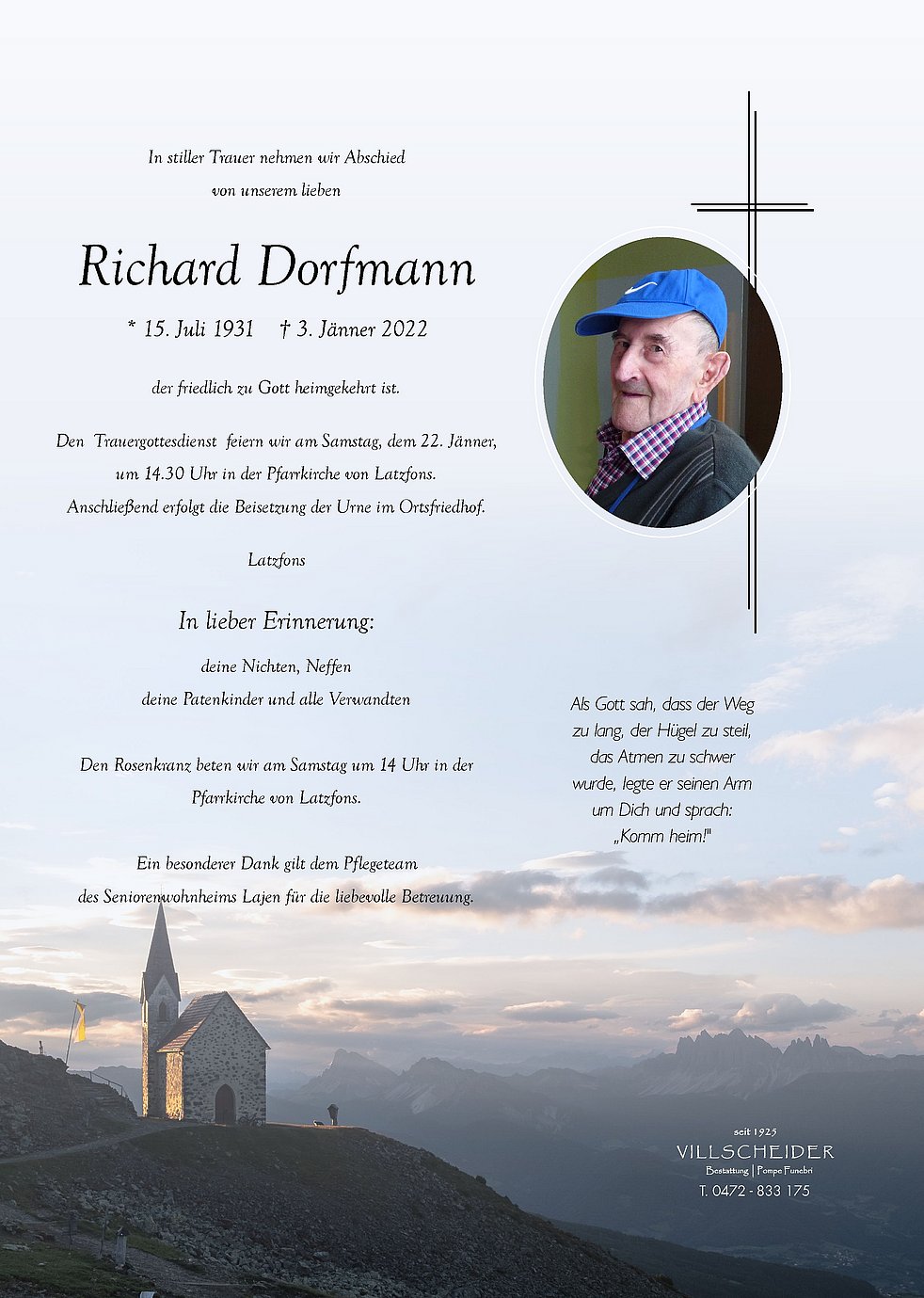 Richard mit dir wor is schuale fohrn olm a hetz. Du hosch ins olla an berign spitznume gebm und mittwochs wor dor kaugummitog (tschunga tog wia du gsog hosch). Du worsch olm gut gelaunt und hosch ins runggollmer und sagschmeler kinder olm olla hoal huamgebrocht. Danke! Wünsch dir a guate leste fohrt. Ruhe in Frieden Richard - bester Busfohrer
