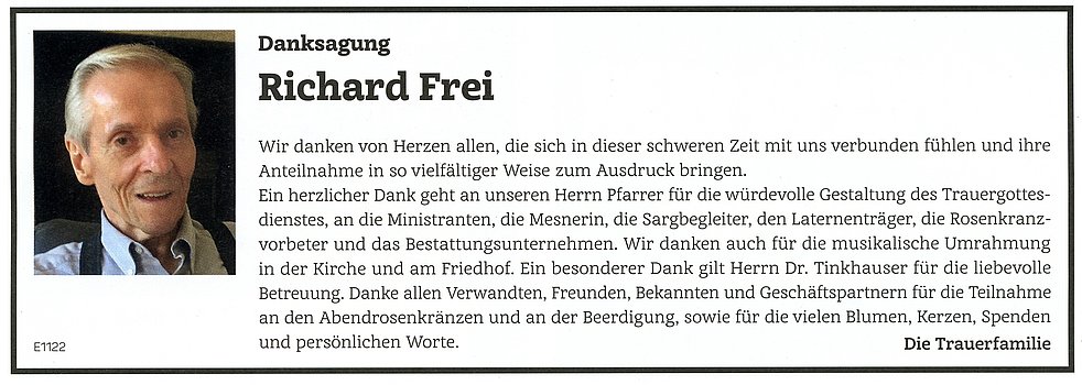 Allen, die an den Rosenkränzen und an der Beerdigung teilnehmen, im Voraus ein herzliches Vergelt´s Gott.