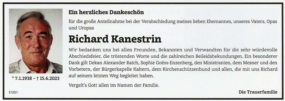 Allen, die am Rosenkranz und an der Beerdigung teilnehmen im Voraus ein herzliches Vergelt’s Gott.