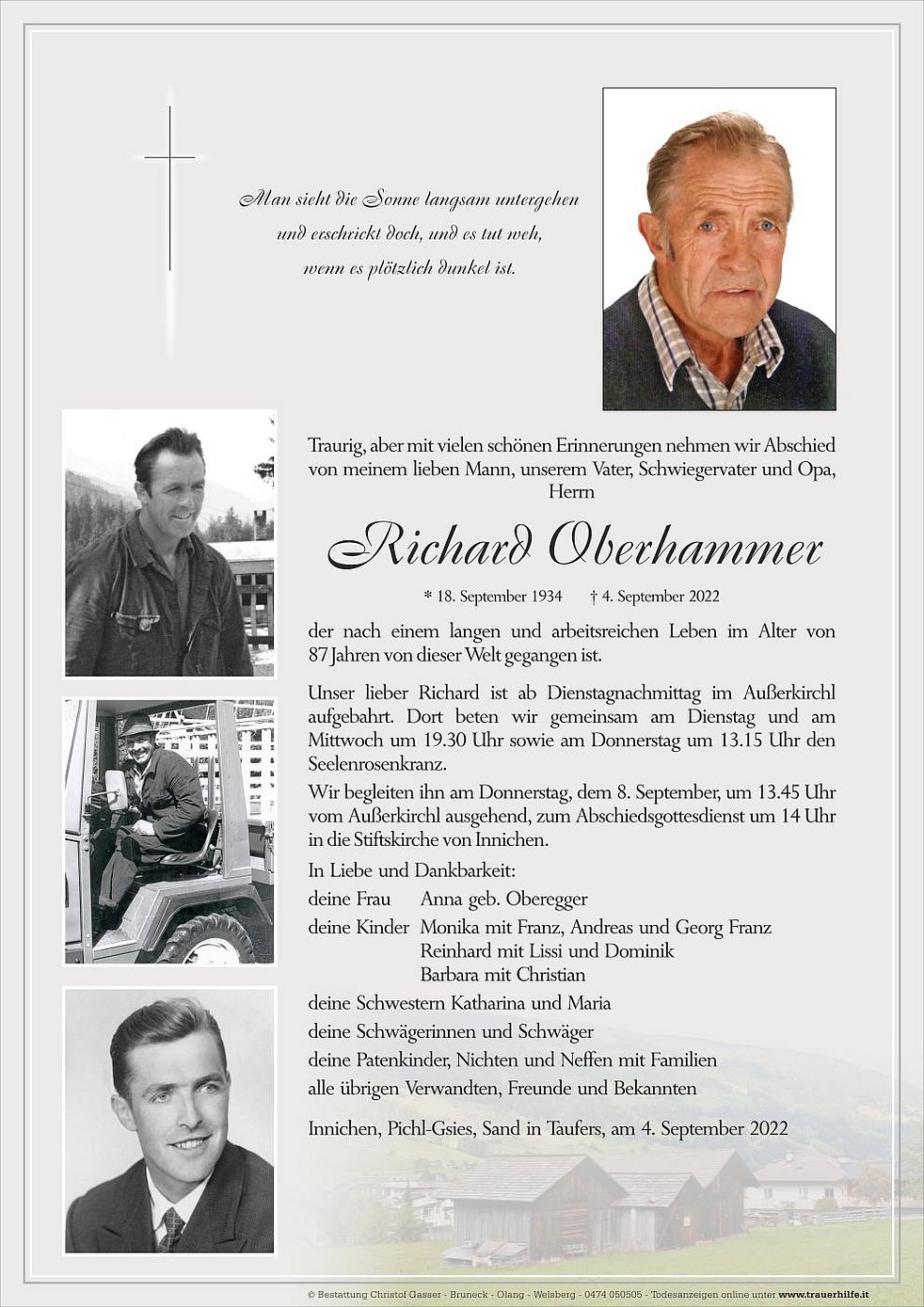 Richard wurde 1934 in Innichen geboren und wuchs dort mit seinen drei Schwestern Anna, Katharina und Maria auf.