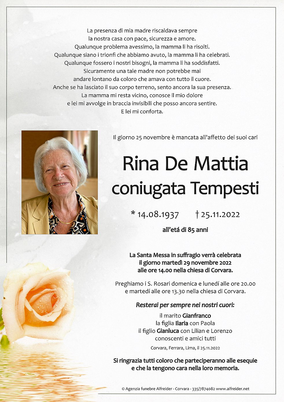 Si ringrazia tutti coloro che parteciperanno alle esequie e che la tengono cara nella loro memoria.