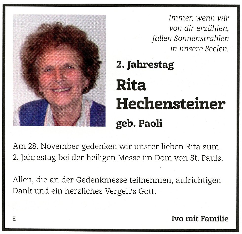 Wir danken allen Verwandten und Bekannten die uns und unserer lieben Rita in dieser letzten Zeit nahe gestanden sind.