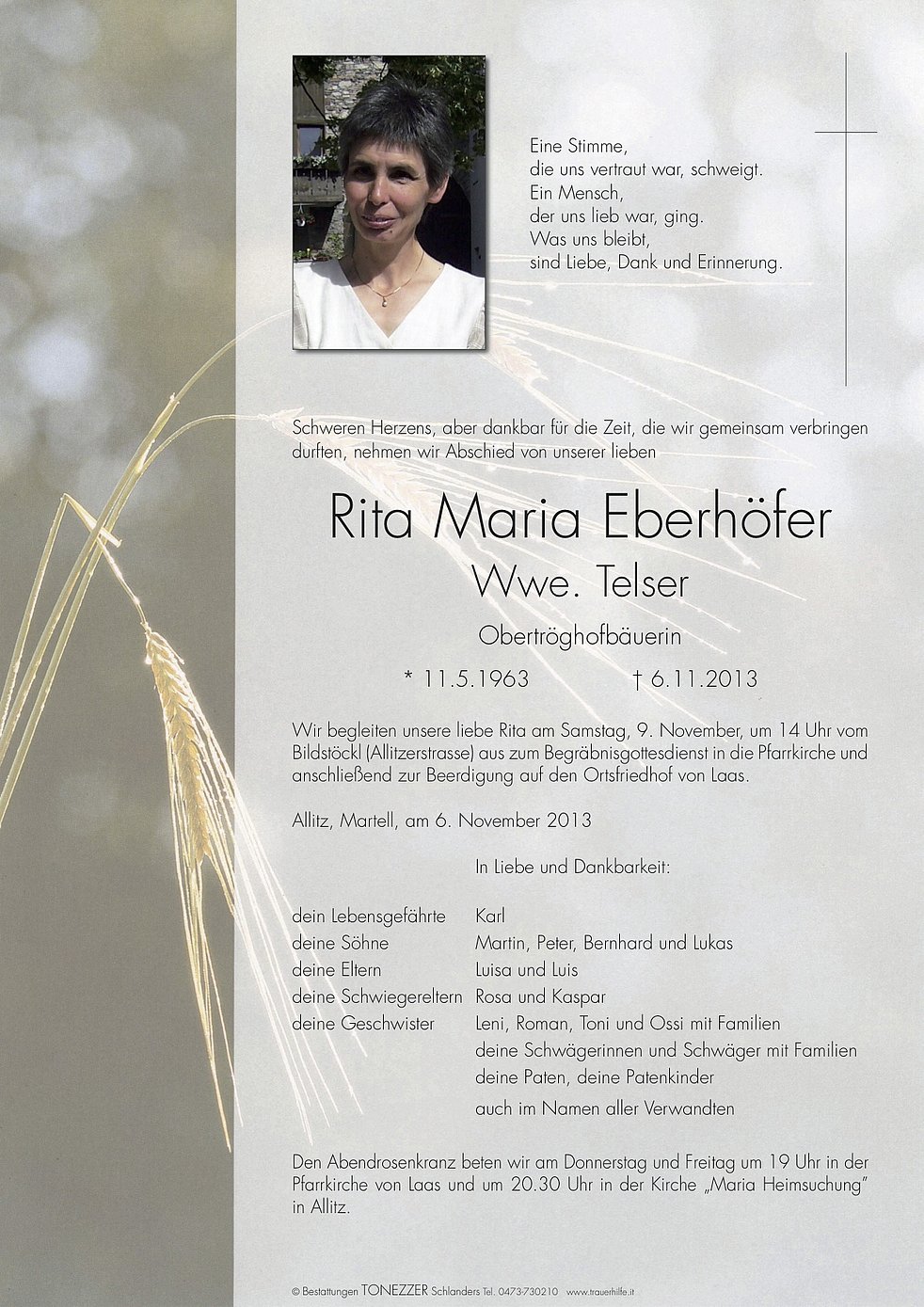 Wir begleiten unsere liebe Rita am Samstag, 9. November, um 14 Uhr vom Bildstöckl (Allitzerstrasse) aus zum Begräbnisgottesdienst in die Pfarrkirche und anschließend zur Beerdigung auf den Ortsfriedhof von Laas.
