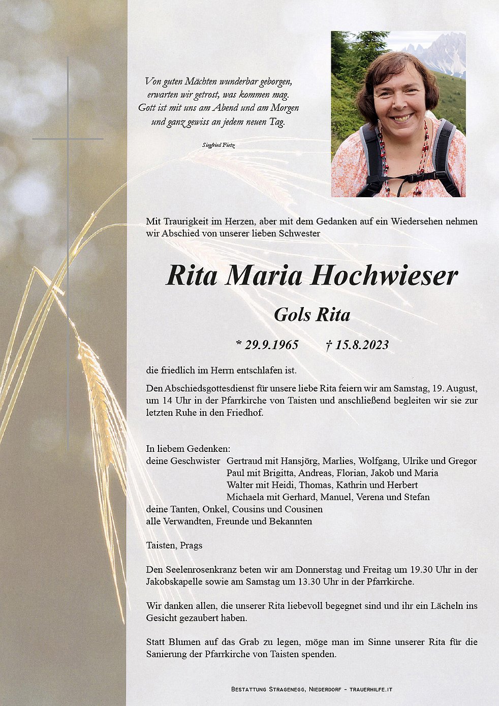 Das Leben ist eine Reise, die heimwärts führt. Gute Reise, Rita !