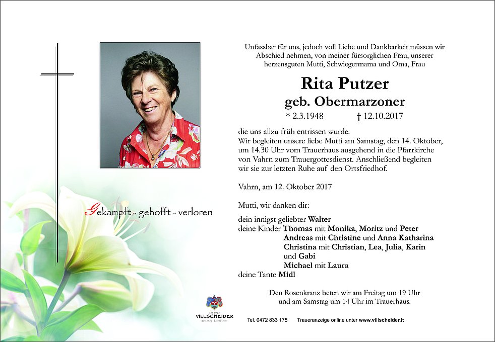 von Vahrn zum Trauergottesdienst. Anschließend begleiten