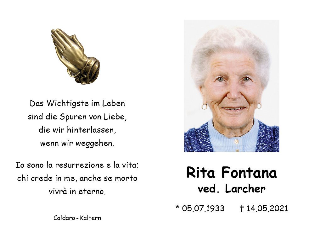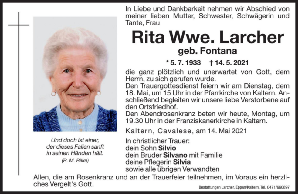 Rita Wwe. Larcher geb. Fontana