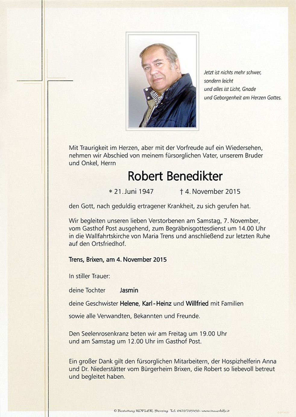 nehmen wir Abschied von meinem fürsorglichen Vater, unserem Bruder
