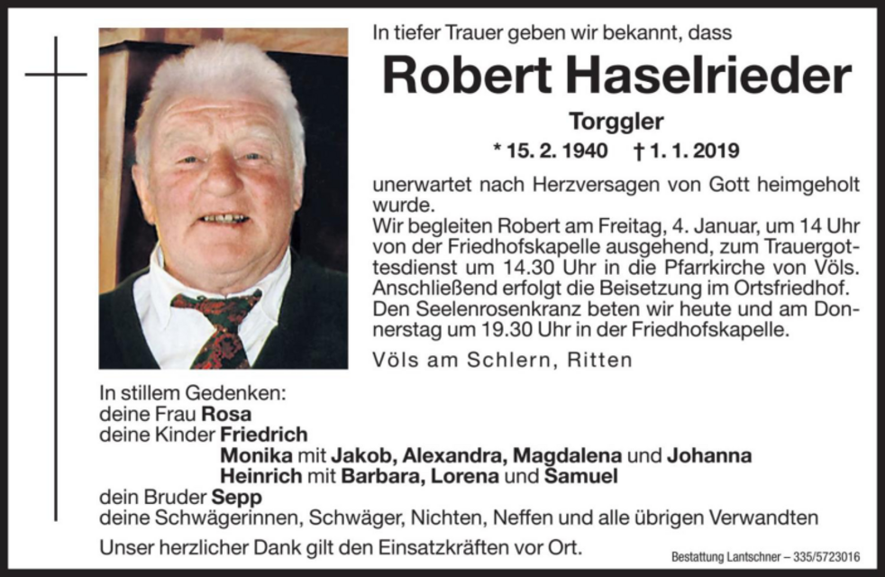 zum Trauergottesdienst um 14.30 Uhr in die Pfarrkirche von Völs und anschließend