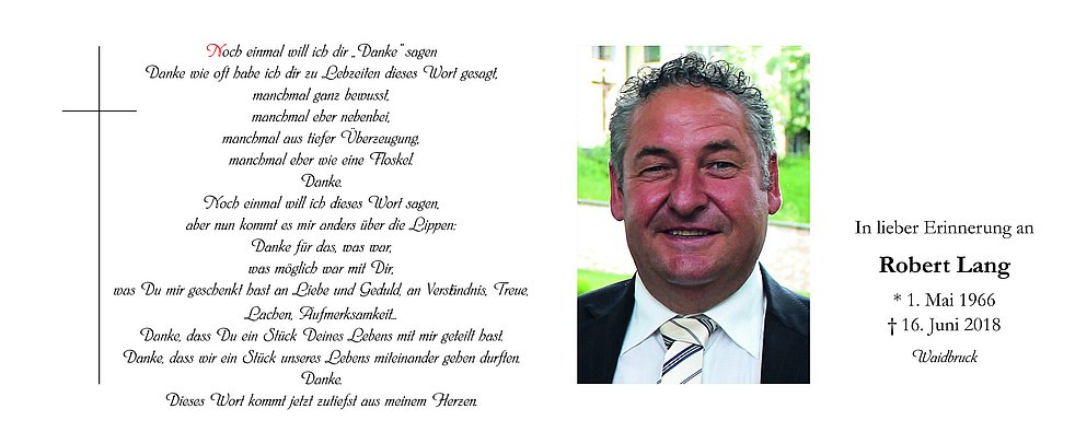 Den Trauergottesdienst feiern wir am Dienstag, dem 19. Juni,