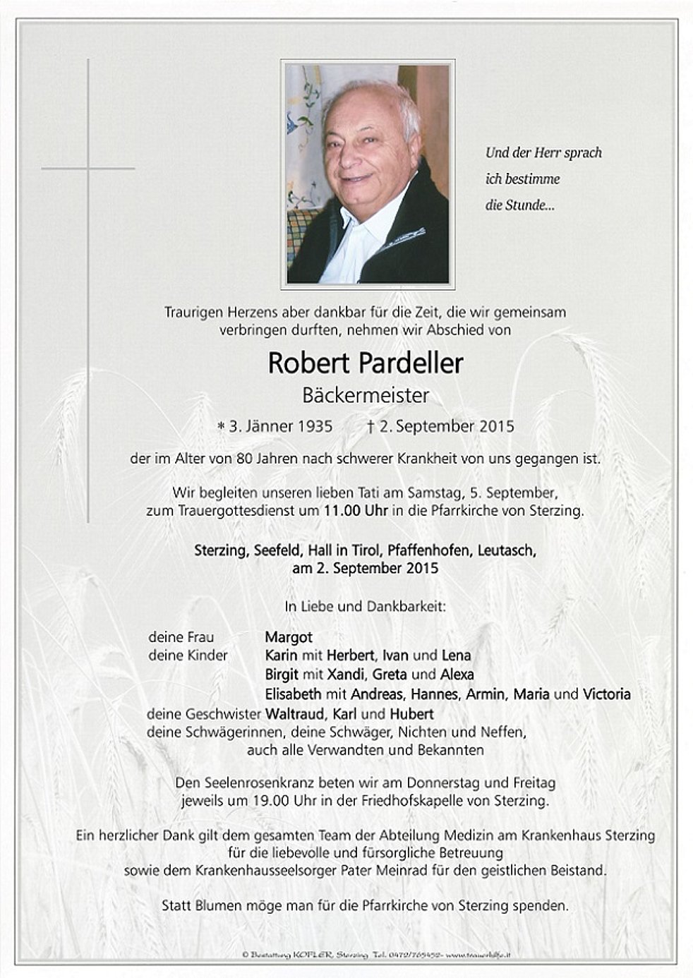 zum Trauergottesdienst um 11.00 Uhr in die Pfarrkirche von Sterzing.