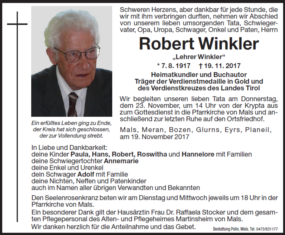 Mals, Meran, Bozen, Glurns, Eyrs, Planeil, am 19. November 2017