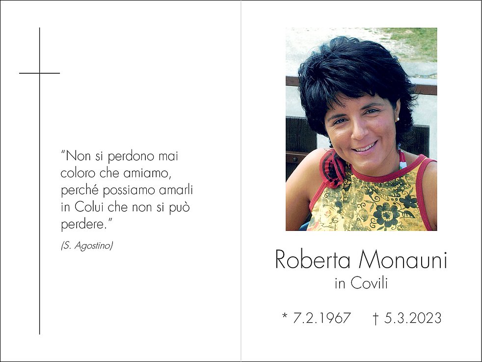 La S. Messa in suffragio verrà celebrata mercoledì, 8 marzo alle ore 14.00 nella chiesa parrocchiale Regina Pacis con successivo funerale alle ore 15.00 al cimitero di Oltrisarco nel campo R.
