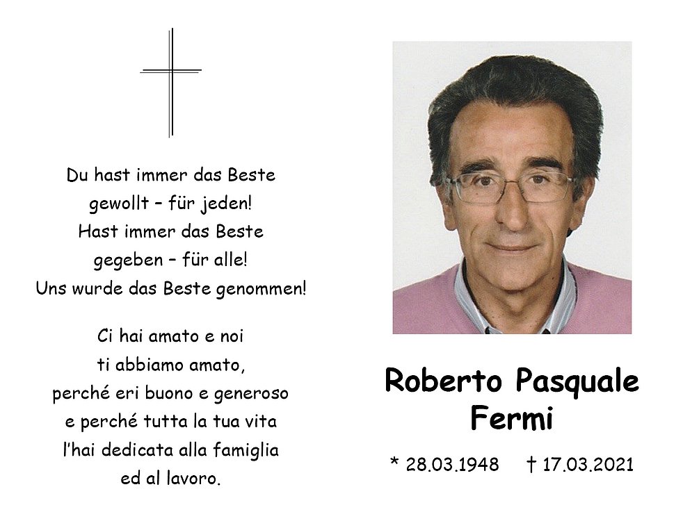 In Liebe und Dankbarkeit nehmen wir Abschied von meinem lieben Mann, unserem guten Papi, Nonno, Bruder, Schwager und Onkel