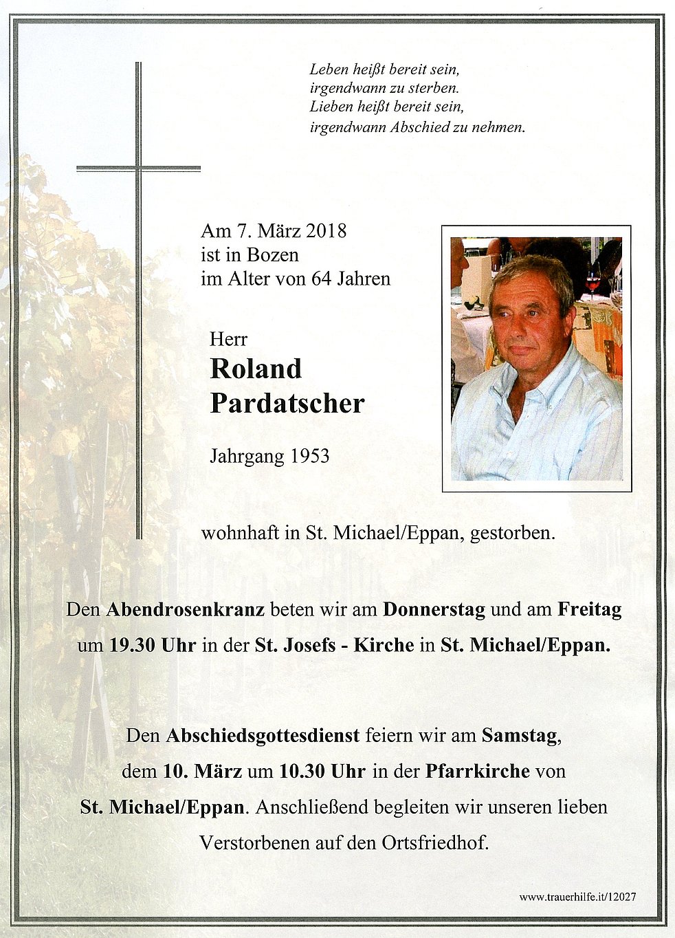 Allen, die an den Rosenkränzen und an der Beerdigung teilnehmen, im Voraus ein herzliches Vergelt´s Gott.