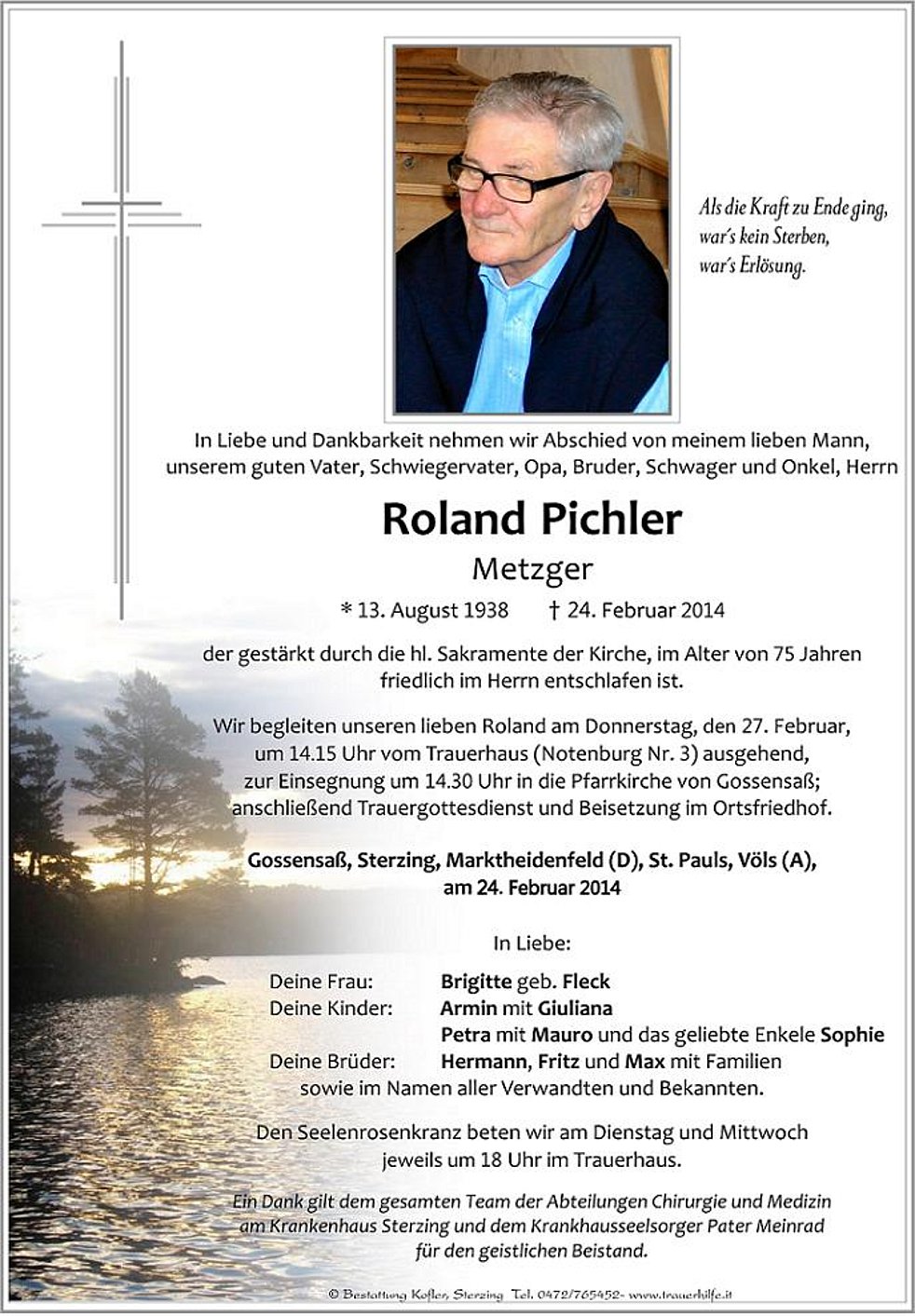 Wir begleiten unseren lieben Roland am Donnerstag, 27. Februar,
