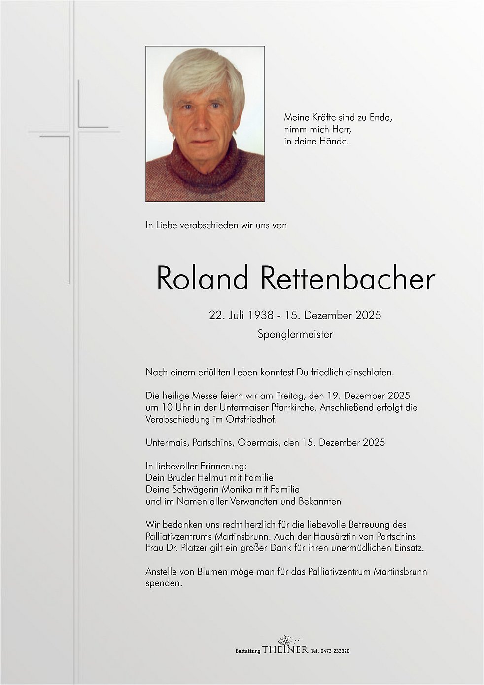 Anstelle von Blumen möge man für das Palliativzentrum Martinsbrunn spenden.