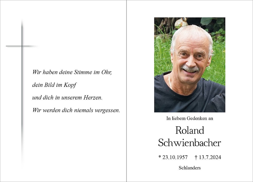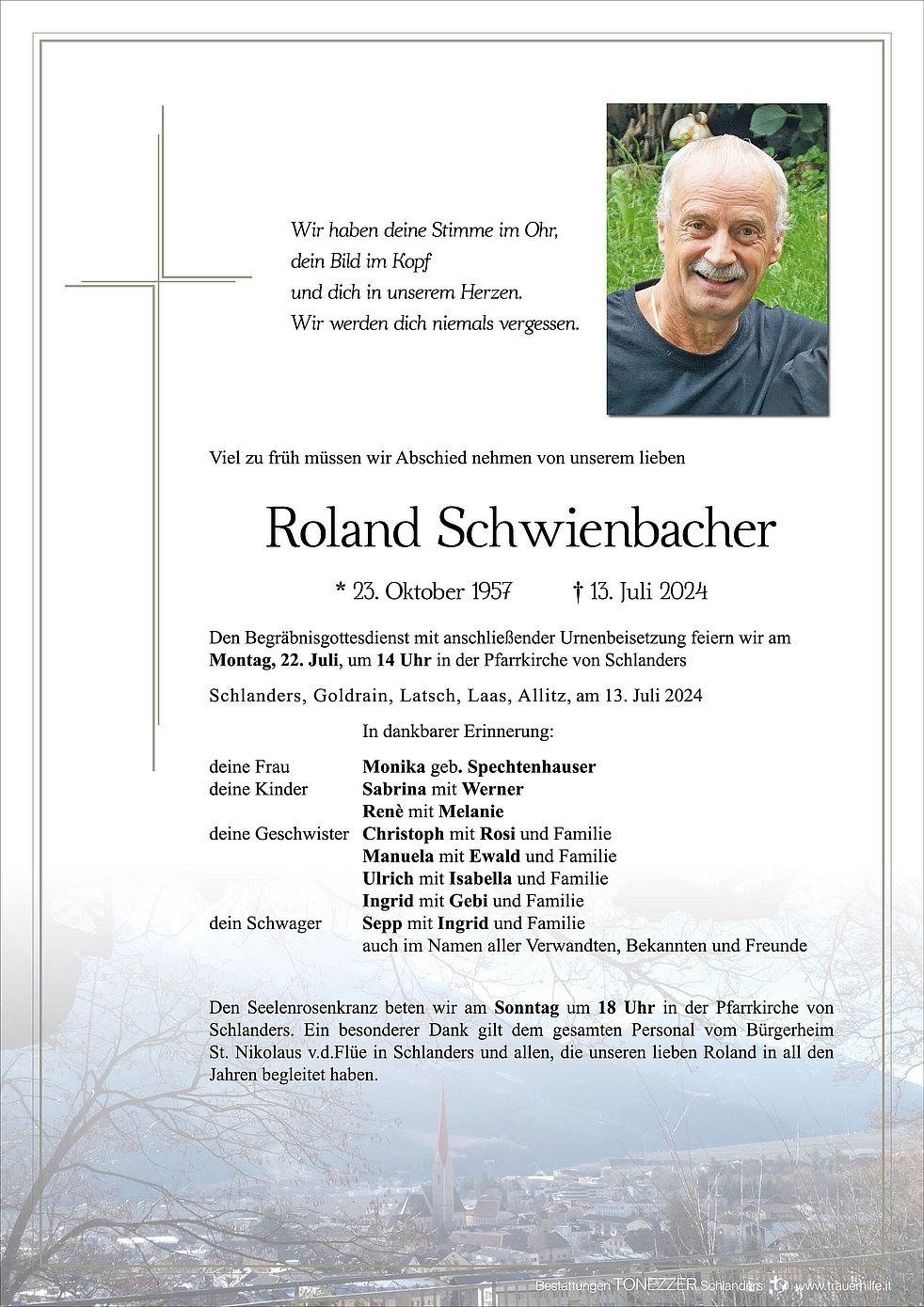 Ein besonderer Dank gilt dem gesamten Personal vom Bürgerheim St. Nikolaus v.d.Flüe in Schlanders und allen, die unseren lieben Roland in all den Jahren begleitet haben.