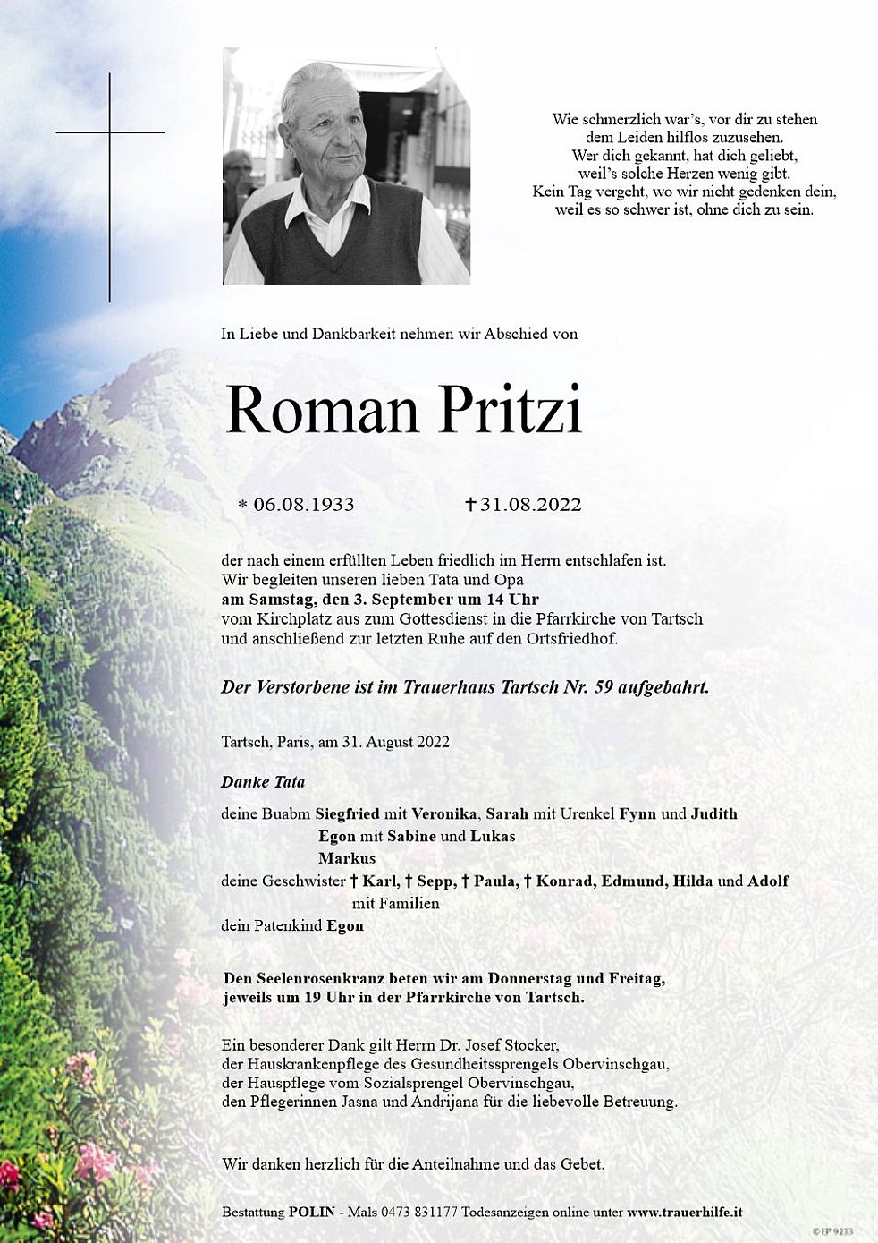 Der Verstorbene ist im Trauerhaus Tartsch Nr. 59 aufgebahrt.