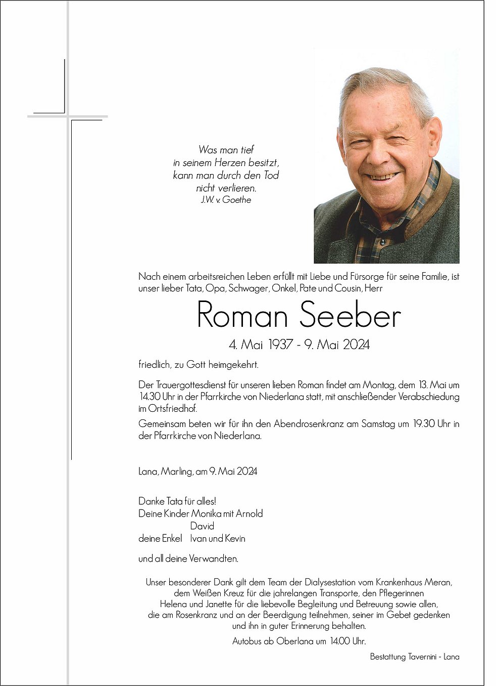 Ruhe in Frieden Roman 🙏 Unser herzlichstes Beileid den Angehörigen