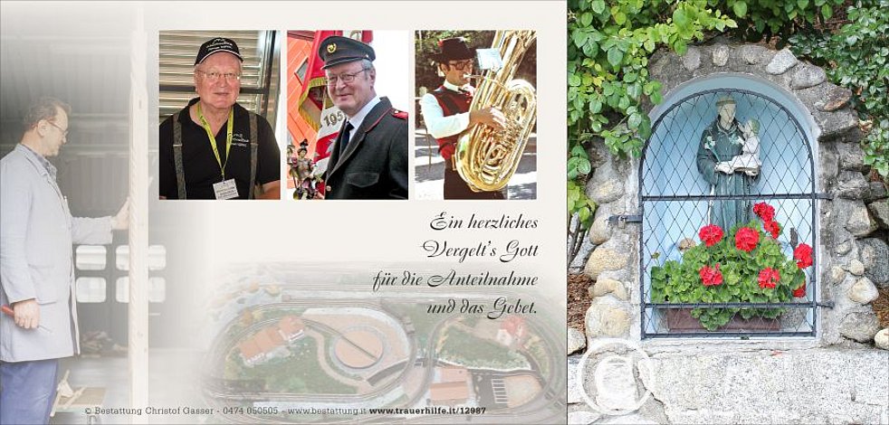 Der Trauergottesdienst, ausgehend von der Friedhofskapelle, findet am Samstag, dem 11. August, um 10 Uhr in der Pfarrkirche von Kiens statt.