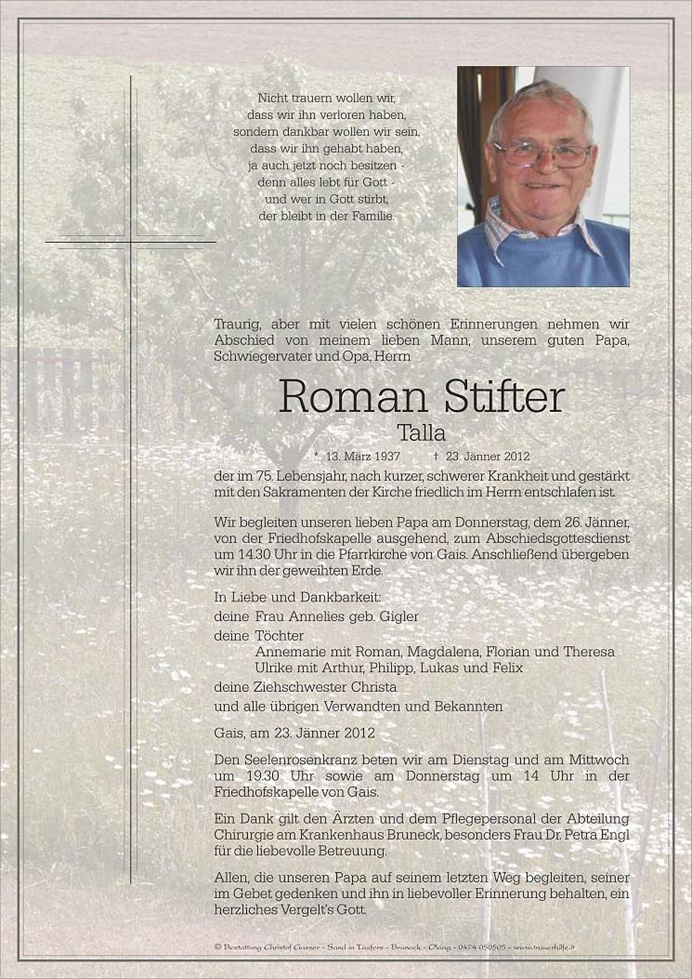 Wir begleiten unseren lieben Papa am Donnerstag, dem 26. Jänner, von der Friedhofskapelle ausgehend, zum Abschiedsgottesdienst um 14.30 Uhr in die Pfarrkirche von Gais. Anschließend übergeben wir ihn der geweihten Erde.