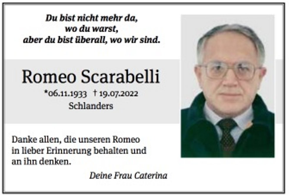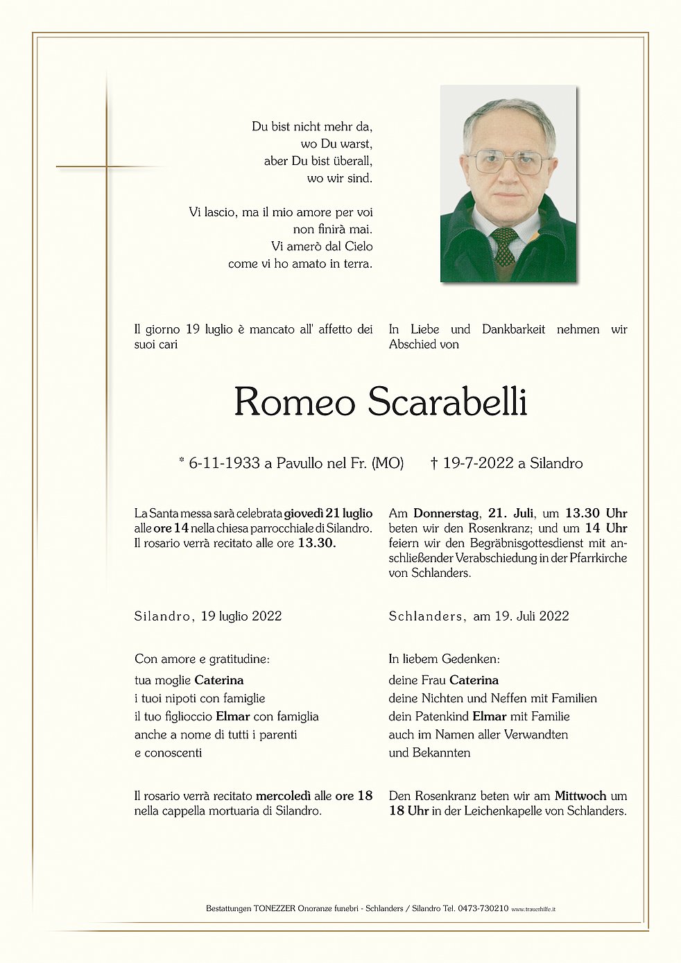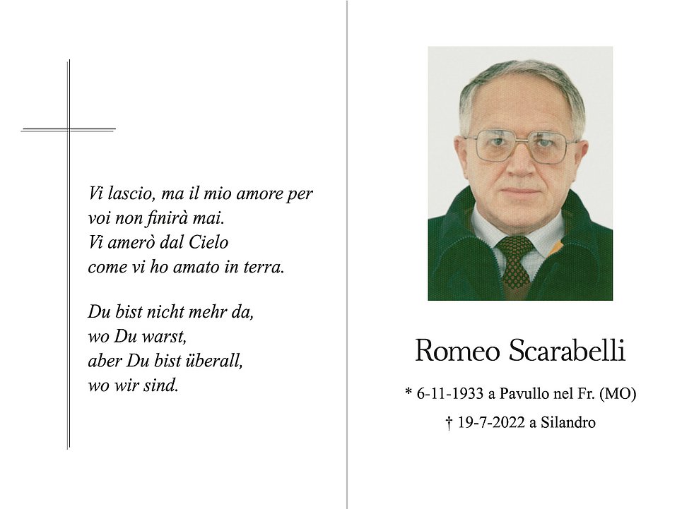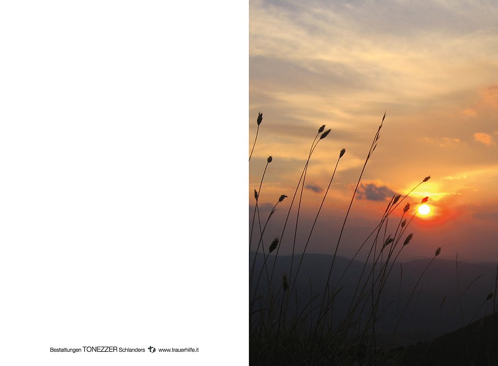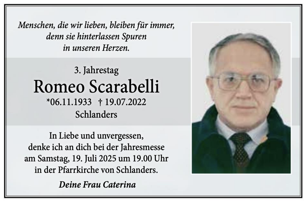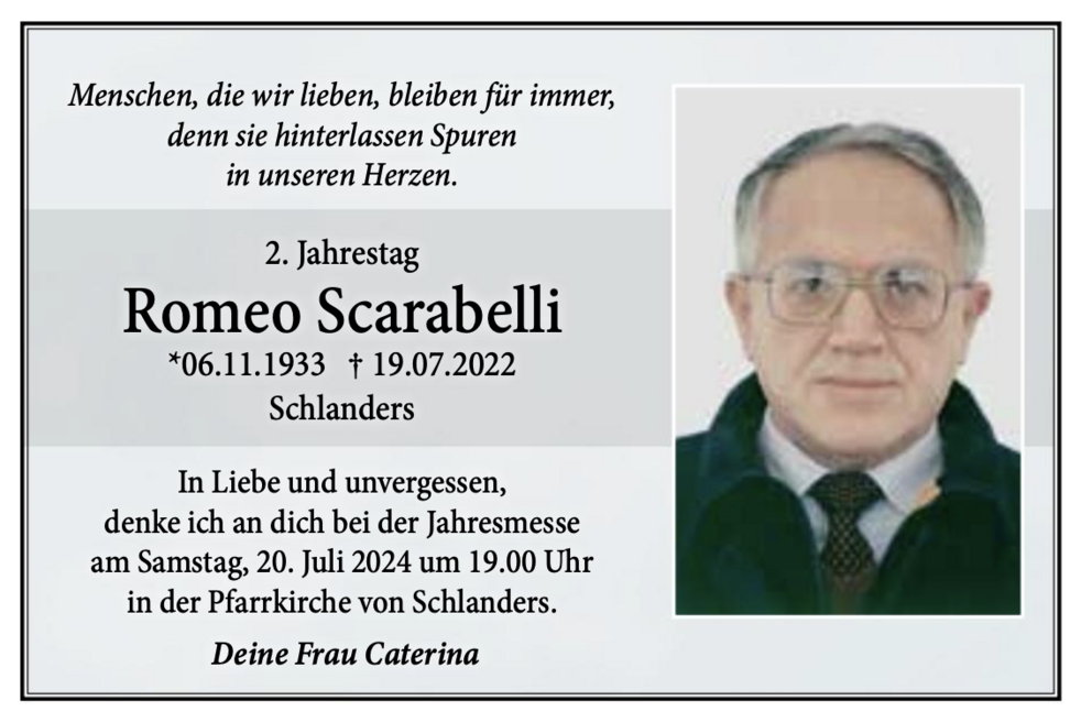 Am Donnerstag, 21. Juli, um 13.30 Uhr beten wir den Rosenkranz; und um 14 Uhr feiern wir den Begräbnisgottesdienst mit anschließender Verabschiedung in der Pfarrkirche von Schlanders.