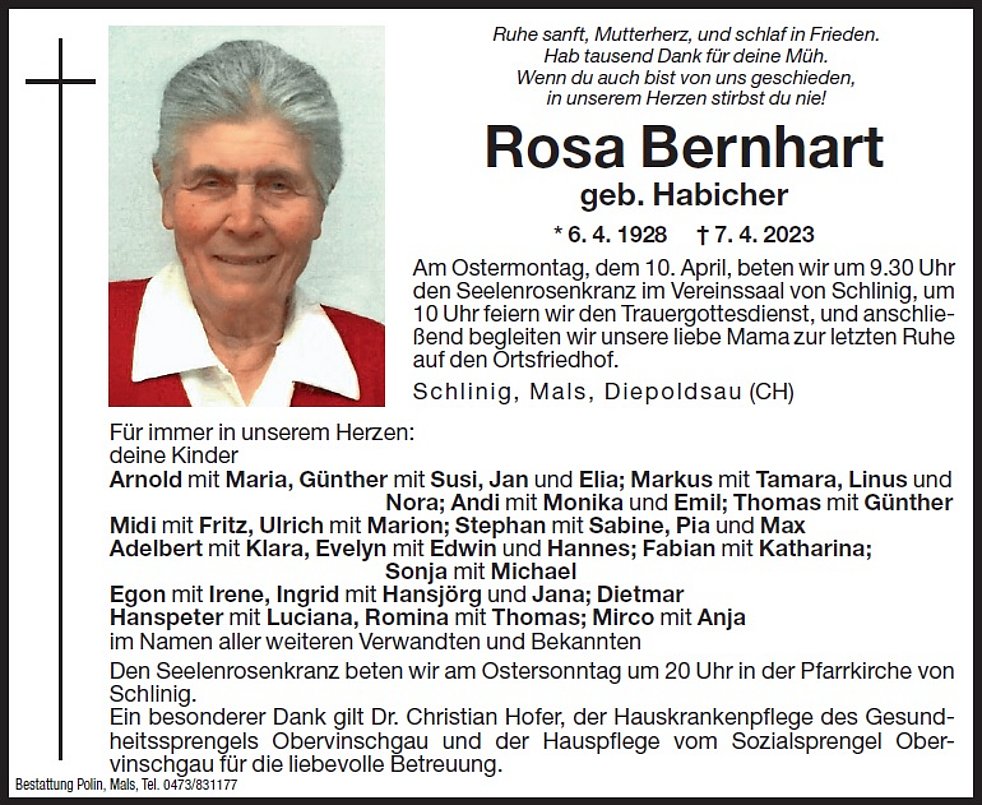der Hauspflege vom Sozialsprengel Obervinschgau für die liebevolle Betreuung.