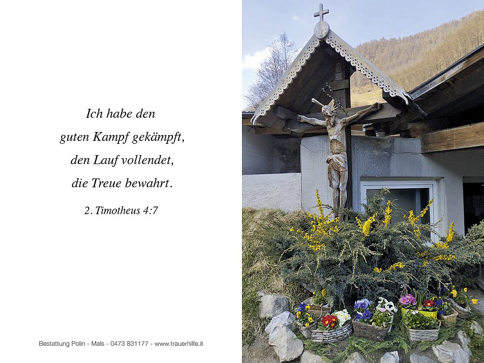 im Vereinssaal von Schlinig, um 10 Uhr feiern wir den Sterbegottesdienst