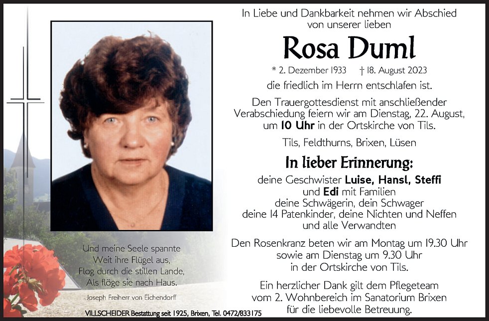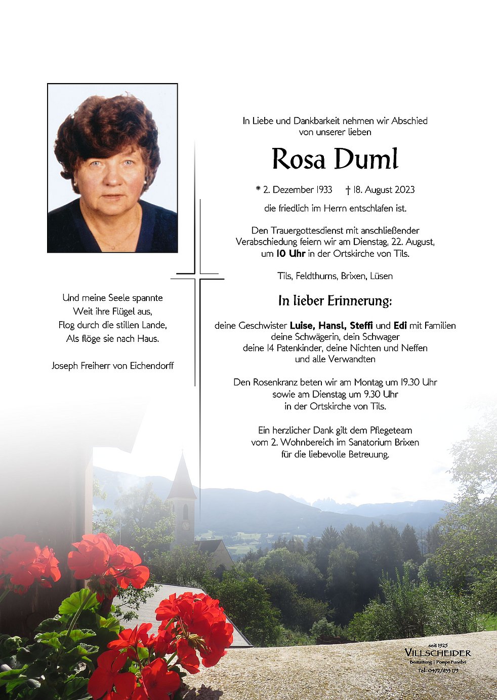 Begräbnisgottesdienst: 22.08. - 10:00 Uhr Tils