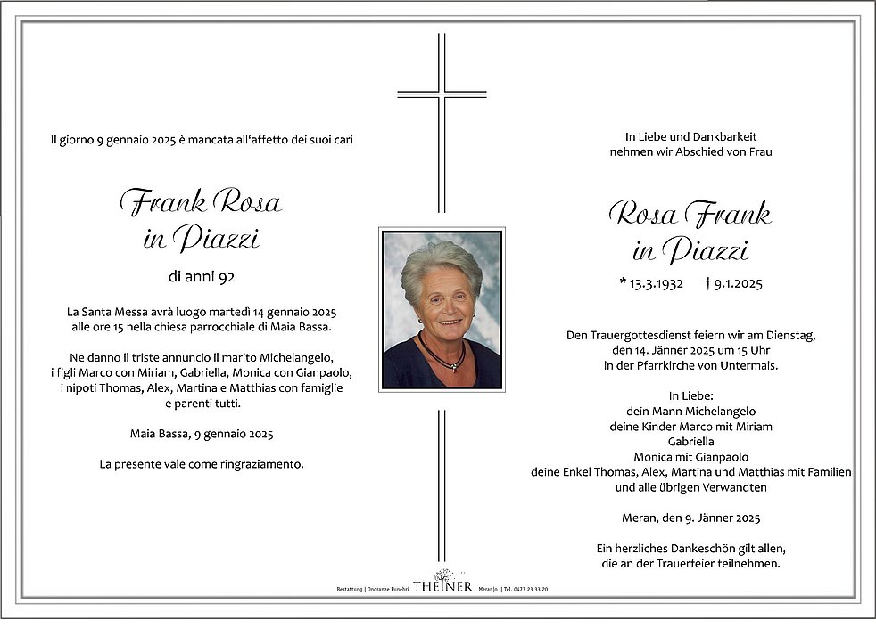Il giorno 9 gennaio 2025 è mancata all‘affetto dei suoi cari