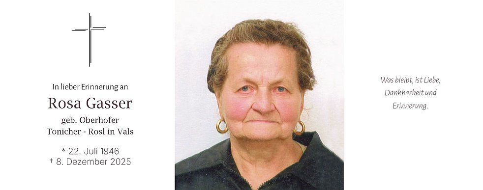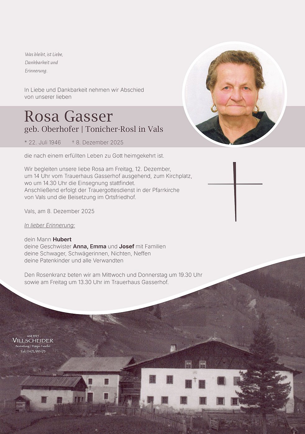 Begräbnisgottesdienst: 12.12. - 14:30 Uhr Vals