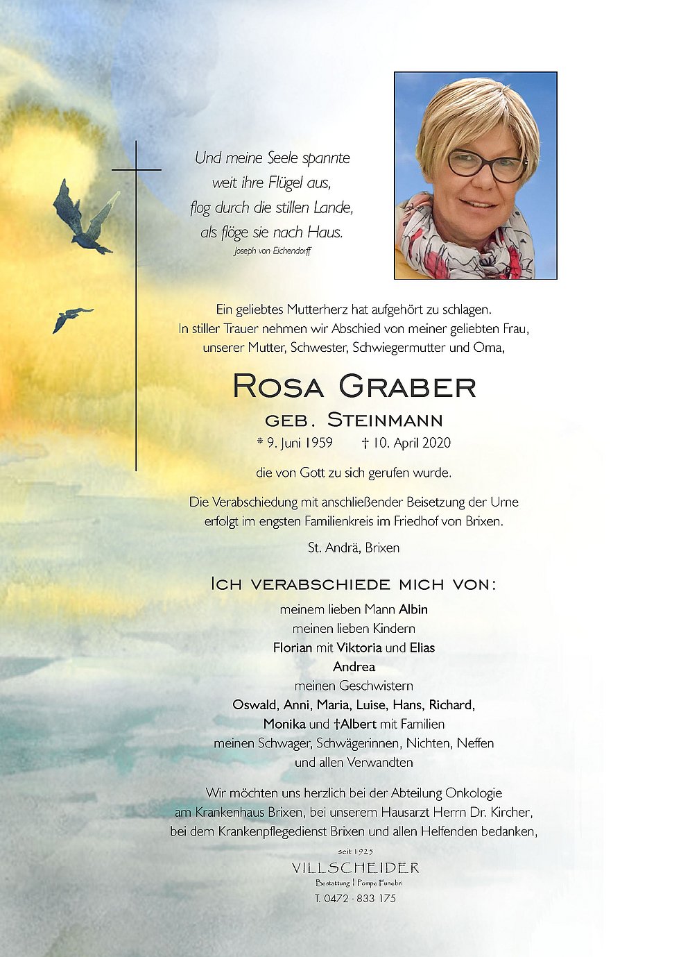 Wir trauern mit der Familie und bedauern dass wir die letzten Wünsche der Frau Rosa nicht erfüllen konnten. Möge sie in Gottes Händen in Frieden ruhen.