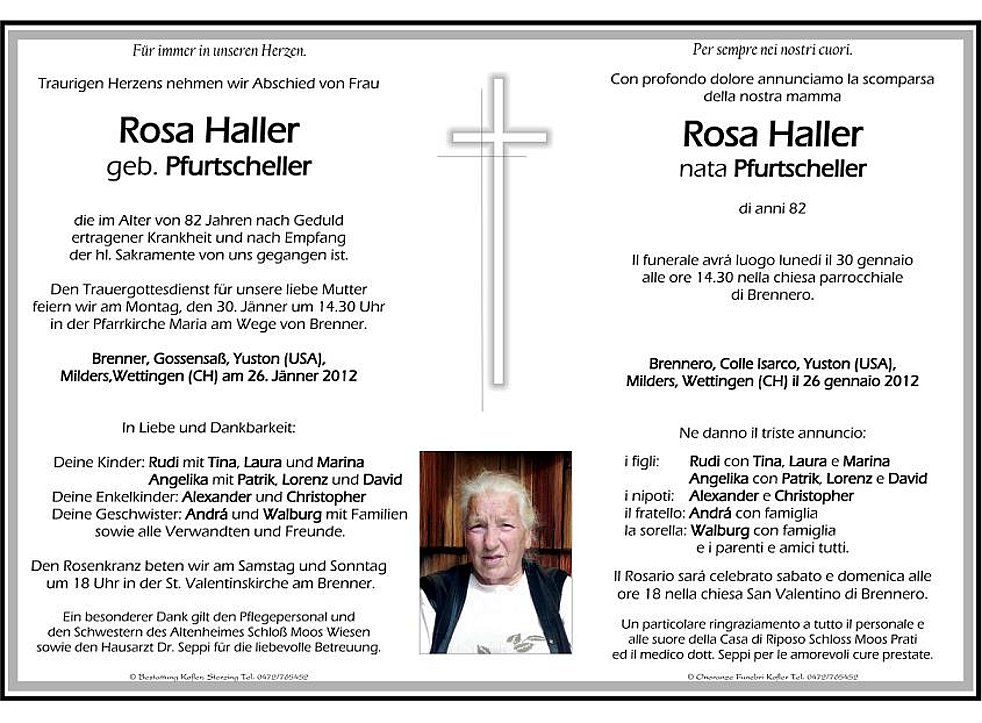 Den Trauergottesdienst für unsere liebe Mutter feiern wir am Montag, den 30. Jänner